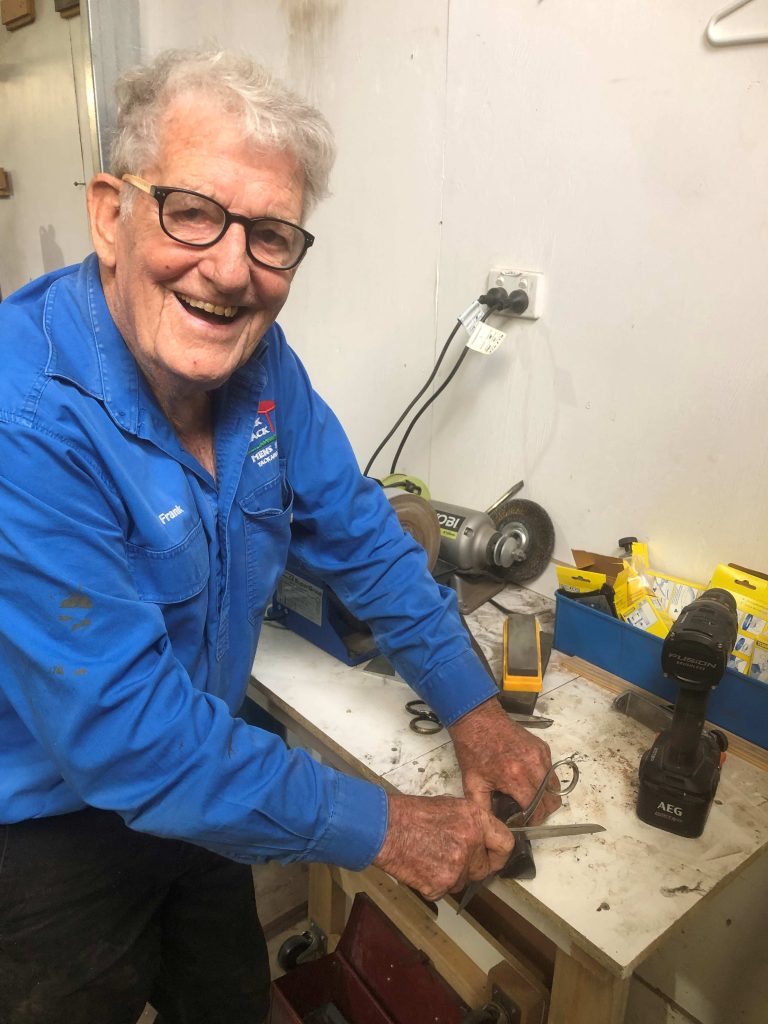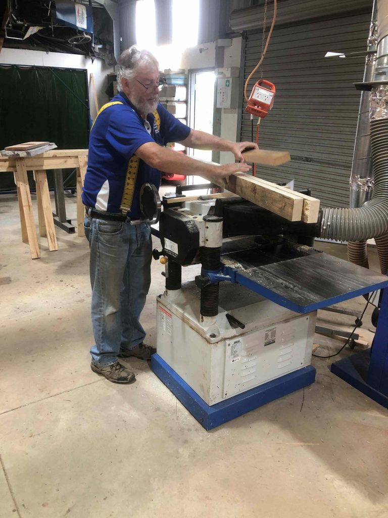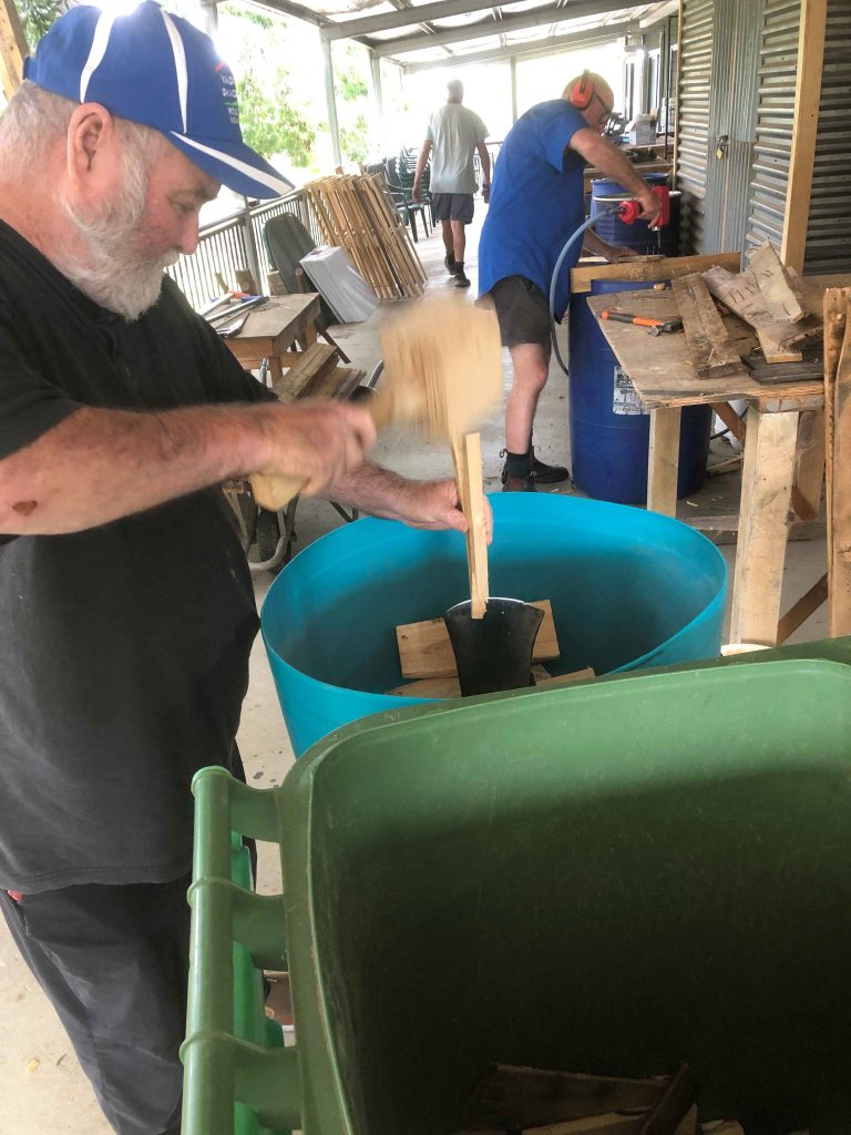 A newly minted 80 year old Shedder blasting the nails out of pallet boards with the shed pneumatic nail remover.