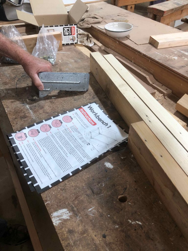 Ron was assembling a workbench using a brackets kit. He did not have as many helpful advisors as usual so maybe this one will be straight forward and end up looking like it should.